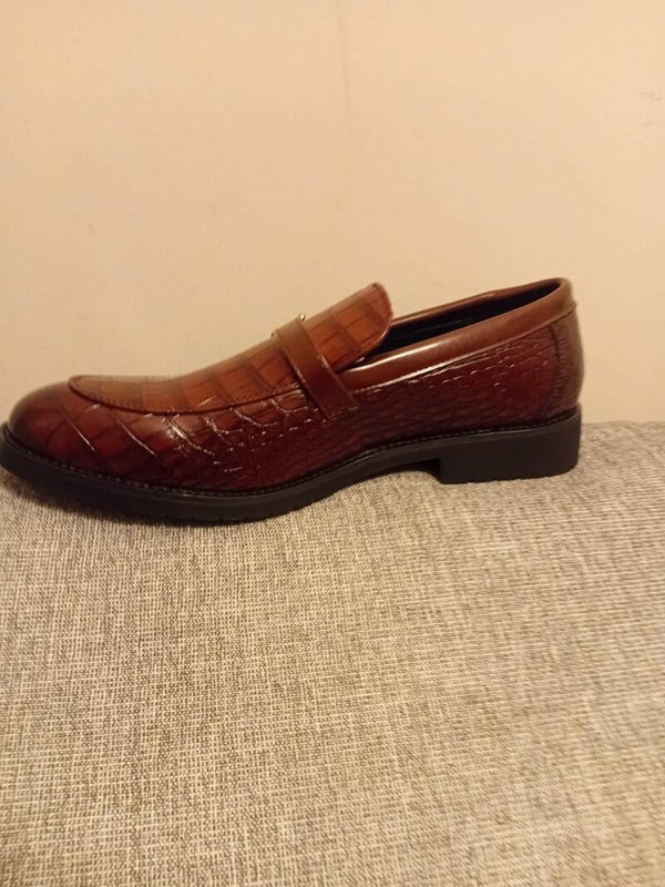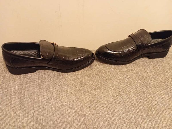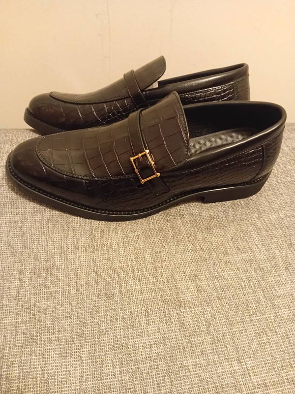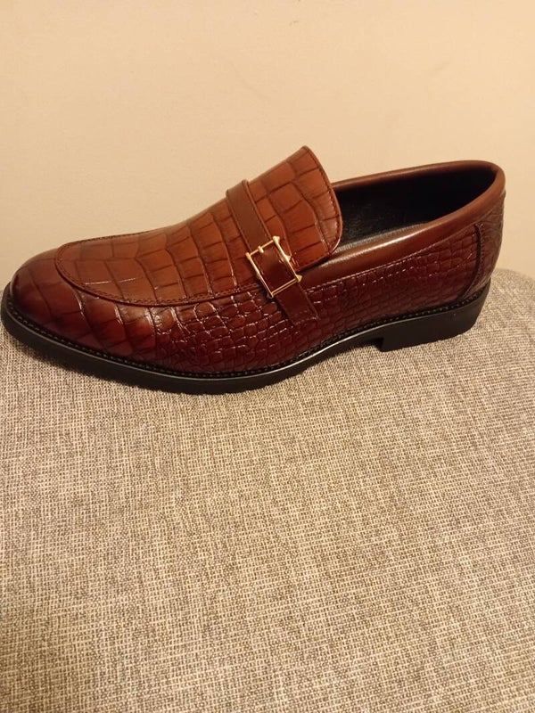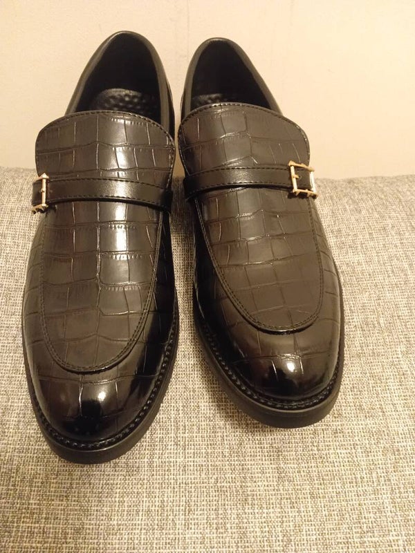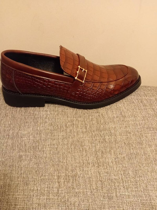 High quality mens crocodile embossed leather Loafers with rubber sole.light weight slip on shoes with buckcle